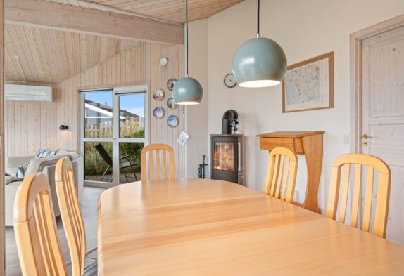 Perfekt geeignet für Familien oder gemeinsam reisende Freunde, bietet diese Sommerhus den perfekten Rahmen für einen unvergesslichen Urlaub. Verbringt gemeinsame Abende vorm Kamin oder schaut einen Film. Auch ein Spieleabend ist am großzügigen Esstisch ist kein Problem.