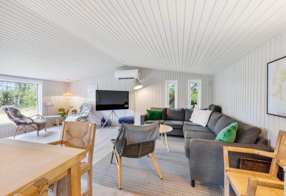 Umgeben von einer großzügigen Terrasse, Kiefern und der Ruhe der Natur, erwartet euch ein gemütliches Ferienhaus im typisch, skandinavischem Stil, in dem ihr euch sofort wohlfühlen werdet. Auf den 85 m² ist Platz für bis zu 6 Personen und euren Hund.