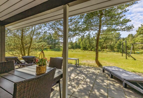 Im Außenbereich genießt ihr die typische Natur der dänischen Westküste in vollen Zügen. Während die Kinder draußen spielen, könnt ihr auf der schönen Terrasse die Füße in den Liegestühlen hochlegen. Neben Schaukel und Sandkasten, gibt es für die Kinder und den Hund genügen Platz um sich so richtig auszutoben.