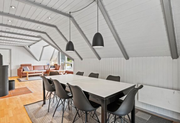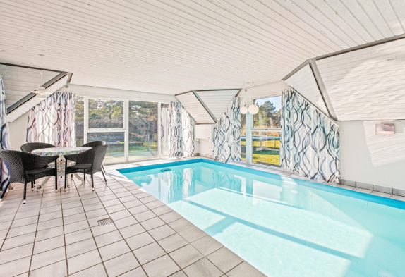 Das große Haus bietet 6 Erwachsenen und 2 Kindern bzw. Jugendlichen mit 185 m2 viel Wohnfläche. Die helle Küche mit Geschirrspüler liegt in offener Verbindung mit dem Esstisch und dem Wohnraum. Die Wohnstube verfügt über bequeme Sitzmöbel und einen Kaminofen, der neben der energiefreundlichen Wärmepumpe in der kühleren Jahreszeit für lauschige Wärme sorgt. Im Poolraum sorgt der 20 m2 große Pool für Spaß und Entspannung für Jung und Alt. Das Wasser im Pool ist schön aufgeheizt – eine Wärmepumpe reduziert hier den Stromverbrauch. Oder wie wäre es mit einer entspannenden Wassermassage im Whirlpool? Für körperliches Wohlbehagen sorgt außerdem die Sauna.