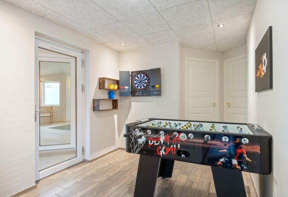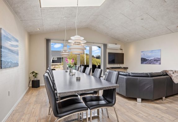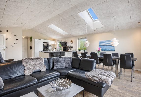 Nebenan findet ihr die große und mit modernen Geräten ausgestattete Küche vor. Hier habt ihr Platz für gesellige Kochabende und könnt das eine oder andere dänische Rezept ausprobieren. Praktischerweise gibt es in diesem Ferienhaus gleich 2 Bäder mit Fußbodenheizung, so dass keine Wartezeiten entstehen. In einem der Bäder findet ihr auch den Whirlpool, der zu entspannten Stunden in heißem Wasser einlädt.