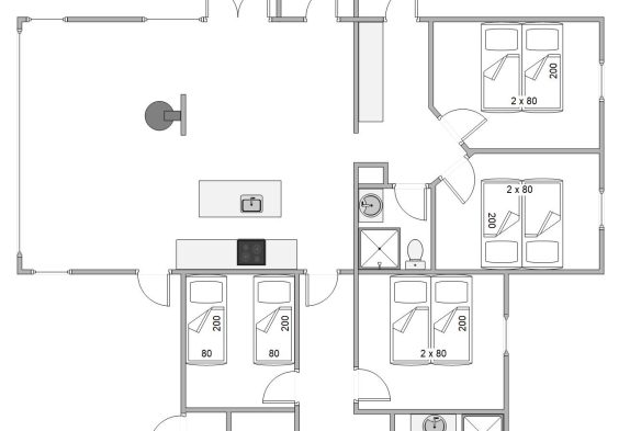 4 der liebevoll gestalteten Schlafzimmer verfügen über bequeme Doppelbetten und 1 Schlafzimmer über 2 Einzelbetten. Das Herzstück des Ferienhauses bildet aber der lichtdurchflutetet Wohnbereich mit offener Küche. Hier wartet ein großer Flachbildfernseher mit Chromecast auf euch – perfekt für gemeinsame Filmabende bei prasselnden Kaminfeuer. Es gibt 3 deutsche Fernsehkanäle in diesem Ferienhaus.