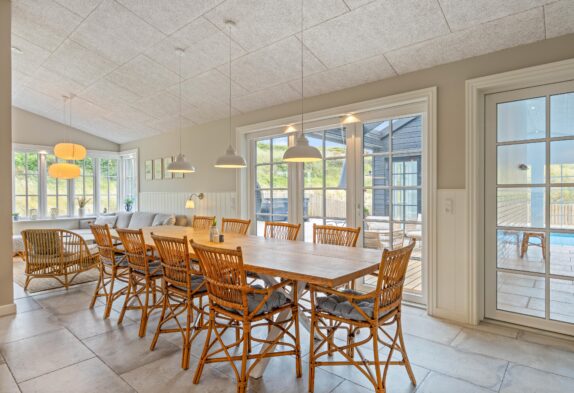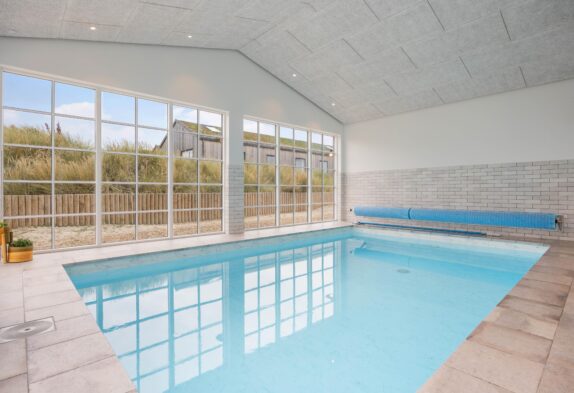 Herzlich Willkommen an der dänischen Westküste und in diesem modernen Poolhaus, nur einen Steinwurf vom Nordseestrand entfernt. Auf 230 m² findet ihr jede Menge Highlights, die euch die Urlaubszeit versüßen werden. Eines davon ist mit Sicherheit der großzügige Swimmingpool mit Gegenstromanlage. Hier könnt ihr mit euren Kindern planschen und euch beim Schwimmtraining austoben.