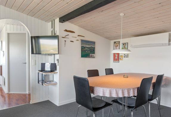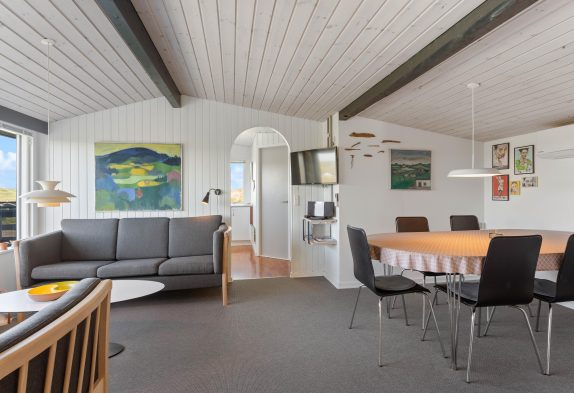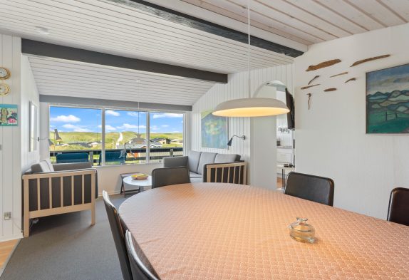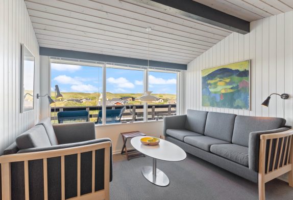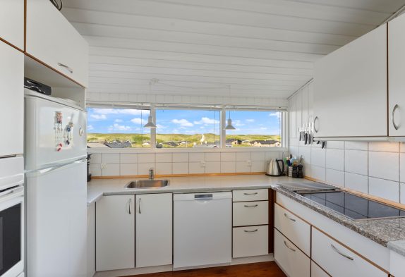 n diesem Ferienhaus wird man sich wie zu Haus fühlen. Die grossen Fenster im Wohnraum sorgen für viel Licht aber auch eine fantastisch Aussicht Richtung der Nordsee, die ihr von der Couch gut geniessen könnt. Wenn es dann mal dunkel wird, könnt ihr einen schönen Film über dem Chromcast streamen oder eine kleine Speile Abend am Esstisch machen. Die Küche ist gut ausgestattet, damit ihr hier Leckereien zaubern könnt und eueren Magen mit dänischen Spezialitäten verwöhnen könnt. Ihr könnt euch in den Zwei Schlafzimmer verteilen, das eine ist mit Doppeltbett für Mama und Papa und in dem anderen sind 2 Einzelbetten. Klein aber fein, mit seinen 59m² hat dieses Ferienhaus ein Badezimmer mit Bodenheizung und auch ein extra gelegenes WC.