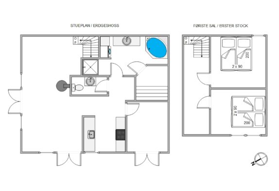Im 1. Stock befinden sich die beiden Schlafzimmer des Ferienhauses, die mit jeweils einem Doppelbett ausgestattet sind. Hier könnt ihr euch nach einem aufregenden Tag zurückziehen und eure Batterien wiederaufladen.