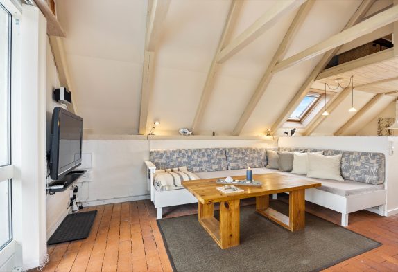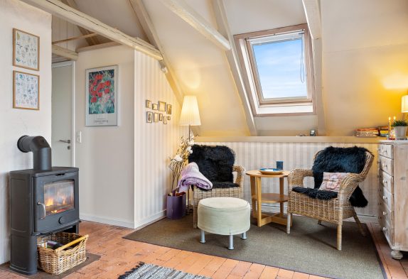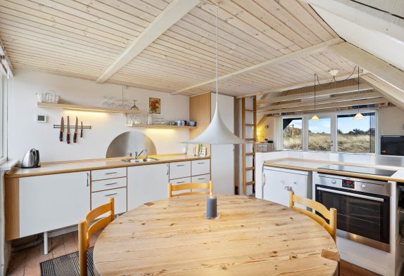 In der Küche könnt ihr gemeinsam kochen und am großen Esstisch könnt ihr abends darum spielen, wer den Abwasch erledigt, da das Haus keinen Geschirrspüler hat.Abends könnt ihr euch nach einem spannenden Tag an der Nordseeküste auf die beiden Schlafzimmer verteilen. Das Schlafzimmer im Erdgeschoss ist mit 2 Einzelbetten ausgestattet, während ihr das Doppelbett auf dem Schlafboden, den ihr über eine Leiter im Wohnzimmer erreicht, findet. Für eine konstante und angenehme Temperatur im Ferienhaus wurde eine energiesparende Luft-zu-Luft-Wärmepumpe im Ferienhaus installiert.