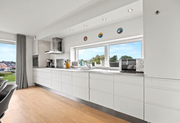 Das zweite gepflegte Badezimmer befindet sich im 2. Stockwerk, zusammen mit dem geräumigen Wohnbereich, mit offener Küche und Essbereich. Hier befindet sich ein gemütliches Sofa, auf dem ihr entspannt fernsehen oder euer Lieblingsbuch lesen könnt. Es gibt viele Kanäle und Serien zur Auswahl auf dem Apple´TV. Die moderne Küche verfügt über eine praktische Ausstattung, die zu einem gemeinsamen Kochabend einlädt.
