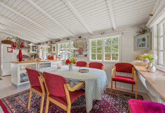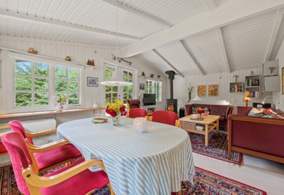 Dieses charmante Holzhaus mit kleinen Bauernfenstern liegt auf einem Naturgrundstück mitten im Walde von Houstrup. Hier findet ihr ein Ferienhaus voller Atmosphäre, mit Vorliebe fürs Detail und einer geschmackvollen Einrichtung. Hier können sich bis zu 4 Personen auf einen schönen erholsamen Urlaub auf Søndervang 34 freuen.