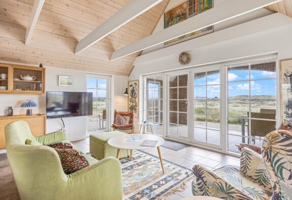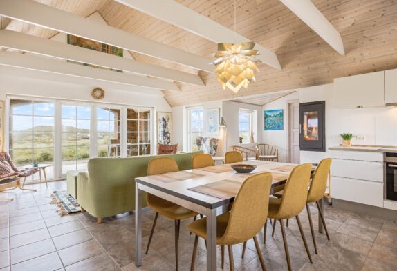 Sucht ihr ein Ferienhaus, in dem ihr abschalten und den Alltagsstress vergessen könnt? Dann ist das Ferienhaus im Jolanthavej 10 in Søndervig die richtige Wahl für euch. Das Ferienhaus bietet euch genügend Platz, um mit bis zu 8 Personen Urlaub zu machen und das Beste ist, dass eure 2 Hunde ebenfalls herzlich willkommen sind. Vom Wohnbereich aus habt ihr eine wunderbare Panoramaaussicht auf die umliegende Dünenlandschaft und über die einzigartige Nordsee, während der Holzofen für die typische Ferienhausatmosphäre sorgt.