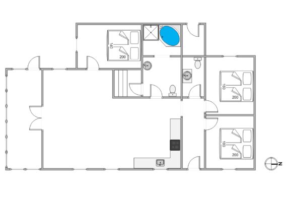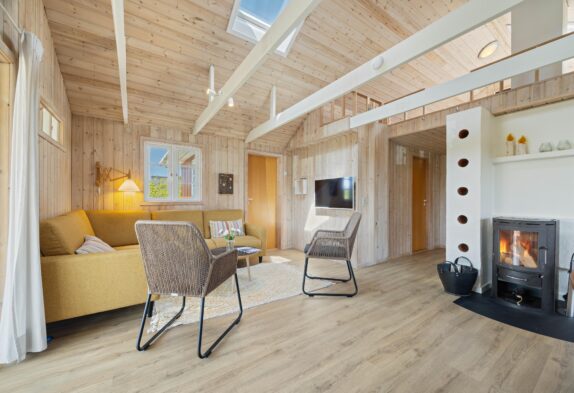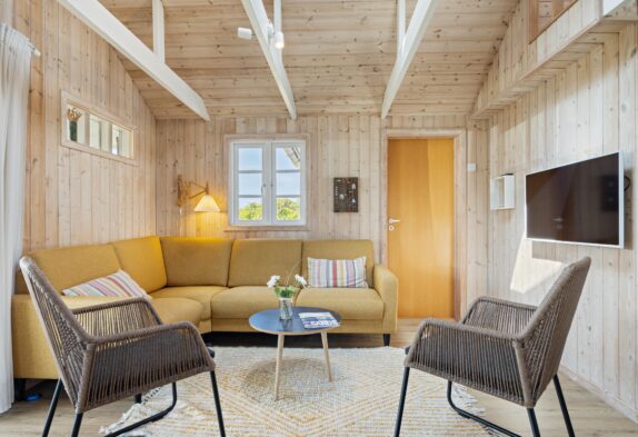 Das Ferienhaus bietet Platz für 6 Personen. Es verfügt über 3 Schlafzimmer mit jeweils 3 Doppelbetten. Die holzvertäfelten Schlafzimmer sind ruhige Rückzugsorte und sorgen für einen erholsamen Schlaf. Das Ferienhaus verfügt sowohl über ein Badezimmer als auch über eine Gästetoilette. Beide sind mit einer Fußbodenheizung ausgestattet und sorgen somit für angenehme Wärme am Morgen. Im Badezimmer laden eine Sauna und ein Whirlpool zu Wellness Momenten ein und versprechen zusätzliche Entspannung.