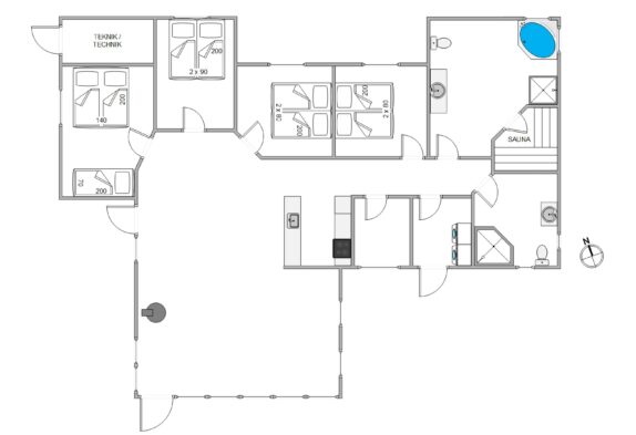 Die zentrale Lage, das warme, helle Ambiente und Wellness mit Sauna und Whirlpool, bilden eine gute Grundlage für einen erholsamen Dänemark Urlaub. 9 Personen können sich auf 4 Schlafzimmer verteilen. Perfekt für mehrere Familien und befreundete Pärchen. In den zwei Badezimmern, beide mit Fußbodenheizung, hat auch jeder die Möglichkeit sich in seinem eigenen Bad einzurichten, um die gewünschte Privatsphäre zu waren.