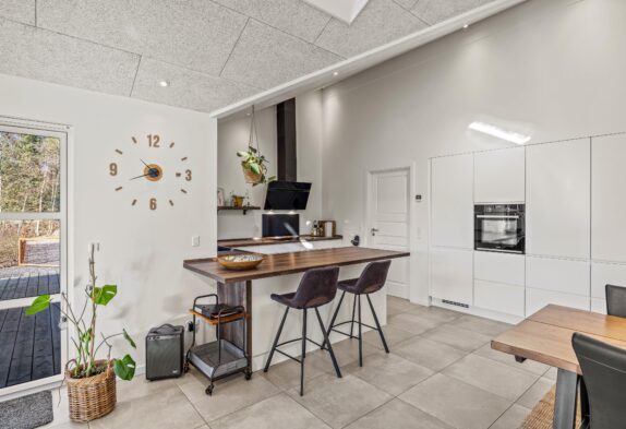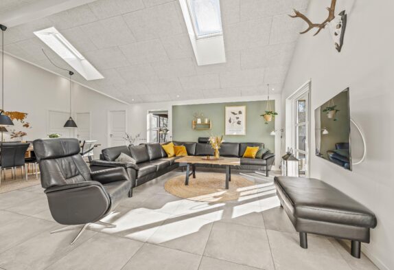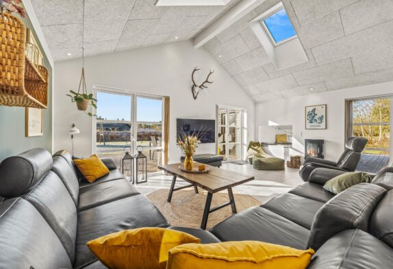 Duevej 4 bietet Platz für 8 Personen und auch euere 2 Hunde dürfen euch begleiten und sich auf lange Spaziergänge am Strand und durch die schöne Natur freuen. Das Ferienhaus ist hell und gemütlich mit ruhigen, neutralen Farben und Holztönen eingerichtet. Es gibt hohe Decken und zahlreiche Fenster, wodurch das Sommerhus einladend und hell wirkt.