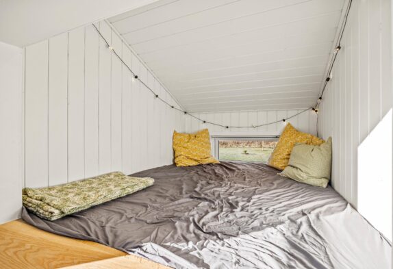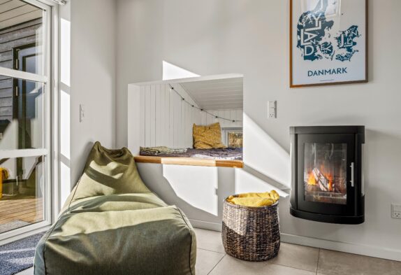 Das Herzstück des Feriendomizils ist der große Wohnbereich mit offener Küche, in dem ihr gemeinsam kochen, fernsehen oder Brettspiele spielen könnt. Neben dem gemütlichen Sofa, auf dem ihr euch entspannen könnt, gibt es auch einen Alkoven mit zwei Schlafplätzen – ein echter Hit für eure Kinder. Im gut ausgestatteten Ferienhaus befinden sich zudem zwei Schlafzimmer mit Doppelbett, ein Zimmer mit zwei Einzelbetten und im letzten Zimmer ein Schlafsofa sowie auch einen Schlafboden.