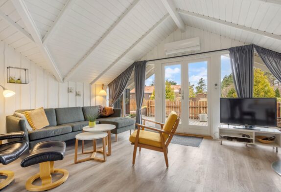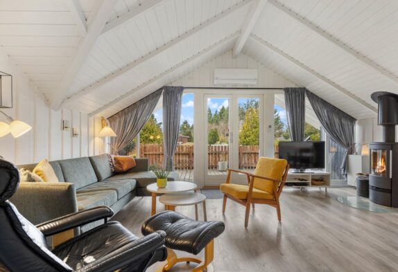 Die 99m2 große Wohnfläche verteilt sich auf 4 Schlafzimmer mit 3 Doppelbetten und 2 Einzelbetten, einer offenen Küche und einem großzügigen Wohn- und Essbereich. Der Kamin bietet eine herrlich gemütliche Wärme und die Wärmepumpe sorgt für energiesparendes Heizen.