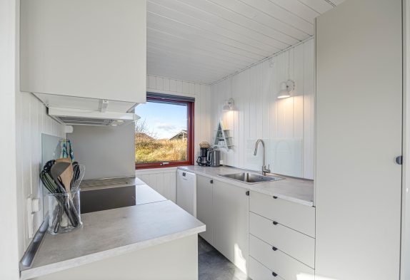 Die praktisch ausgestattete Küche ist komplett ausgestattet, um gemeinsam ein leckeres Menü zu zaubern. Auch eine Fußbodenheizung wurde hier installiert. Veranstaltet doch auch mal einen Abend mit skandinavischen Gerichten. Um den Abwasch kümmert sich danach der Geschirrspüler. Das Ferienhaus verfügt auch über eine energiesparende Wärmepumpe, mit der ihr die Räume Heizen könnt.