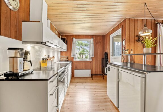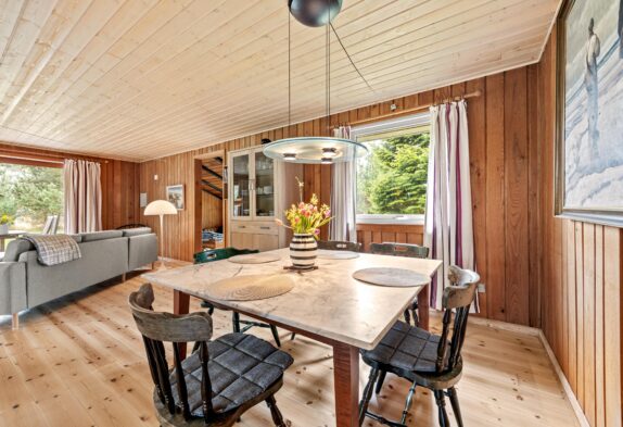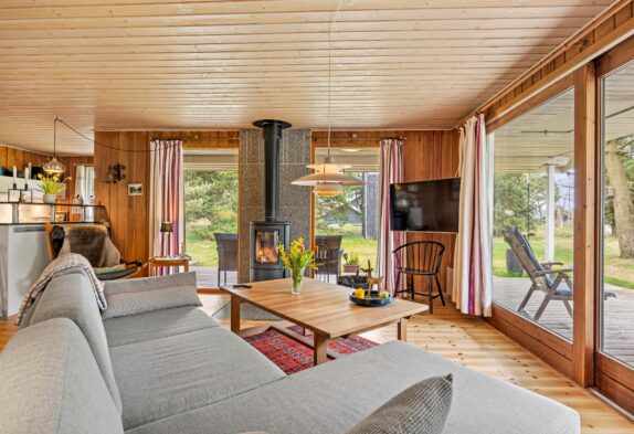 Bei diesem Sommerhaus könnt ihr viele Stunden an der frischen Luft sein. Der Terrassenbereich befindet sich an zwei Seiten des Ferienhauses, so dass ihr immer den passenden Platz finden könnt. Wandert mit der Sonne oder sucht einen schattigen Platz unter dem überdachten Teil der Terrasse, währe ihr euren frisch aufgebrühten Kaffee genießt, ein Stück dänischen Kuchen esst oder den neuesten Krimi lest.