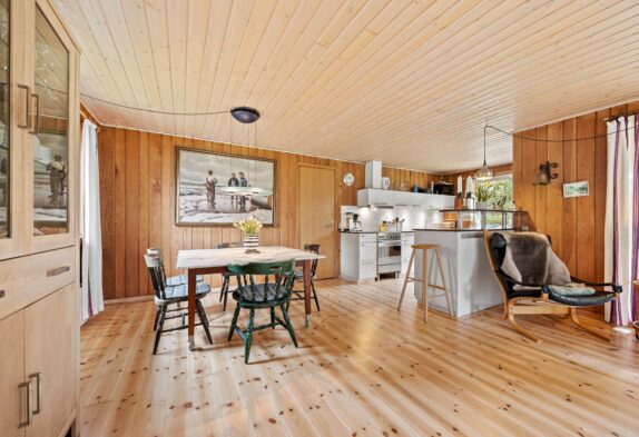 Die praktisch eingerichtete Küche, der Esstisch und das Wohnzimmer liegen in offener Verbindung miteinander, so dass ihr viele schön Stunden mit der ganzen Familie verbringen könnt. Während ihr das Abendessen vorbereitet, können die Kinder am Esstisch spielen und sind direkt in der Nähe. Nach dem Abendessen könnt ihr es euch auf dem Sofa und Sessel gemütlich machen, den Filmabend starten lassen und zum Knistern des Kamins und selbgemachten Popcorn den Abend ausklingen lassen.