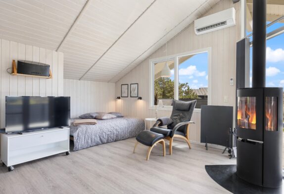 Das Herzstück des Ferienhauses ist das große Wohnzimmer mit der Küche in dem ihr euch versammeln und viele gemeinsame Stunden genießen könnt. Die praktisch ausgestattete Küche mit Geschirrspüler und 80 l Gefrierschrank lädt zum gemeinsamen Kochen ein und am Abend könnt ihr euch beim Knistern des Holzofens und der wohligen Wärme entspannen, während ihr euren privaten Filmeabend mit selbstgemachtem Popcorn veranstaltet. Bei Bedarf könnt ihr auch die energiesparende Wärmepumpe einschalten.