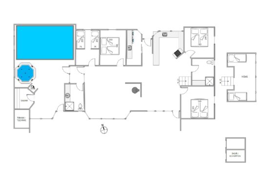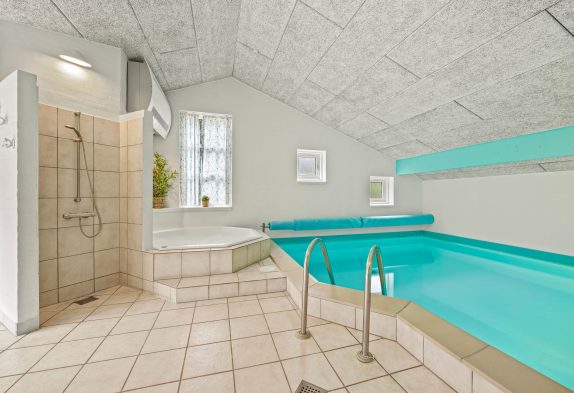 In direkter Verbindung zum Wohnzimmer befindet sich der Poolbereich, und während die Kinder im Pool plantschen könnt ihr euch im Whirlpool entspannen und die Seele baumeln lassen.