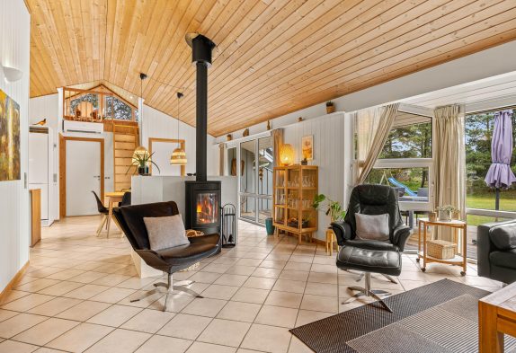 Viele schöne Urlaubsstunden könnt ihr alle gemeinsam in dem großen Wohnbereich verbringen. Der offene Küchenbereich ist direkt neben dem Essbereich, so dass ihr alle zusammen kochen könnt, während die Kinder auf dem Hochboden spielen. Zentral im Wohnraum befindet sich der Kamin, der euch mit seiner wohligen Wärme umhüllt und durch das Knistern des Holzes die gemütlichen und entspannenden Rahmen für den Abend bildet. Bei Bedarf könnt ihr die energiesparende Wärmepumpe hinzuschalten.