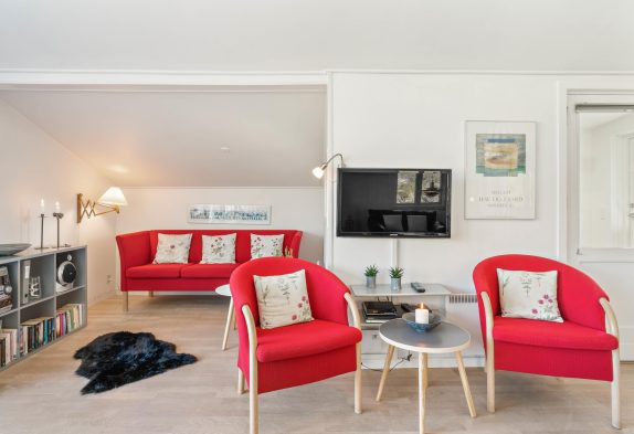 Dieses Ferienhaus ist Urlaub pur. Die 82 m2 verteilen sich auf 3 Schlafzimmer, den offenen Wohn- und Essbereich, ein Bad und die ebenfalls offene Küche. Gemütliche Abende vor dem knisternden Kaminfeuer oder spannende Spieleabende werden in dieser Umgebung zum einzigartigen Erlebnis. Durch die offene Küche seid ihr auch beim Zubereiten der Mahlzeiten vereint und könnt schon die nächsten Aktionen gemeinsam planen. Auch ein unterhaltsamer Filmabend mit deutschen Programmen ist möglich.