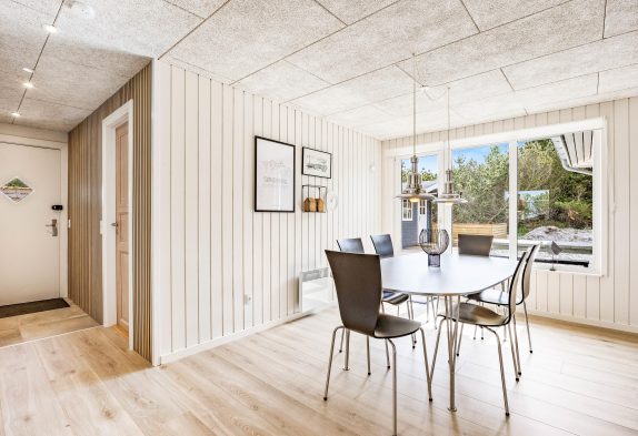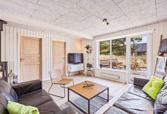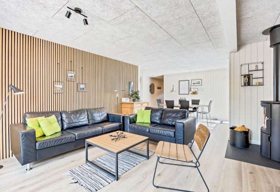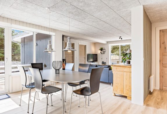 Das typisch dänische Ferienhaus hat eine offene Raumaufteilung, damit ihr die gemeinsame Zeit mit Familie und Freunden optimal nutzen könnt. Der Wohn – und Essbereich ist hell und freundlich und mit Liebe zum Detail gestaltet. Ihr könnt den Tag auf dem Sofa ausklingen lassen und ein gutes Buch lesen oder fernsehen, während an kühlen Tagen, der Kamin knistert und eine angenehme Wärme verströmt. Die offene Küche, die an Wohn – und Essbereich angrenzt, ist gut ausgestattet und bietet genug Platz zum gemeinsamen Kochen. Der integrierte Geschirrspüler erleichtert euch den Abwasch und spart Zeit, die ihr zum Beispiel für einen lustigen Spieleabend nutzen könnt.