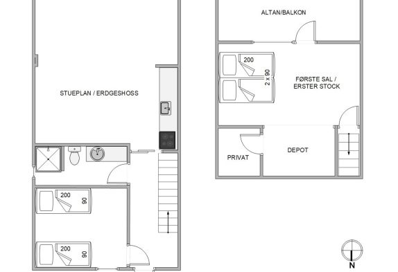 Im unteren Bereich findet ihr zur linken das Schlafzimmer mit den 2 bequemen Einzelbetten und das praktische, gepflegte Bad mit Handtuchwärmer. Folgt ihr der Treppe nach oben, so findet ihr hier das 2. Schlafzimmer mit einem gemütlichen Doppelbett. Von hieraus habt ihr auch Zugang auf den Balkon, auf dem ihr euch in den bequemen Balkonmöbeln entspannen könnt. Hier lässt sich auch gut der erste Kaffee des Tages genießen.