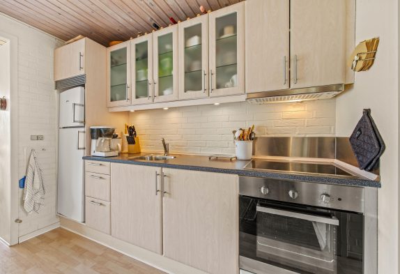 Im Erdgeschoss befindet sich zudem der offene Wohnbereich mit Küche und schöner Fensterfront. Die gut ausgestattete Küche lädt zum gemeinsamen Kochen ein. Am Essplatz könnt ihr die selbstgekochten Speisen genießen oder auch einen Spieleabend veranstalten. Das bequeme Sofa lädt zum Fernsehen ein und der elektrische Kamin sorgt dabei für eine hyggelige Stimmung.