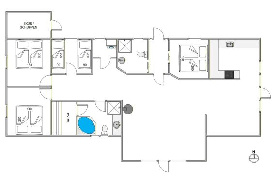 Im Ferienhaus sind zwei Badezimmer. Insgesamt zwei Duschen und ein Whirlpool der zur gepflegten Sauna grenzt. An kühleren Tagen sorgen der Whirlpool und die Sauna für pure Entspannung und zaubern das Ferienhaus in eine Wohlfühloase.