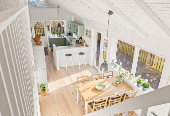 Eine Treppe führt euch vom Parkplatz direkt zum Ferienhaus, welches 2025 umfassend renoviert wurde. Die neue, einladende Küche ist nicht nur stilvoll, sondern auch mit allen modernen Geräten ausgestattet, sodass ihr hier köstliche Mahlzeiten zubereiten könnt. Am großzügigen Esstisch genießt ihr eure selbst gekochten Gerichte oder verbringt gesellige Spieleabende mit der Familie.