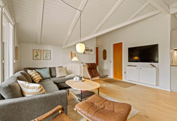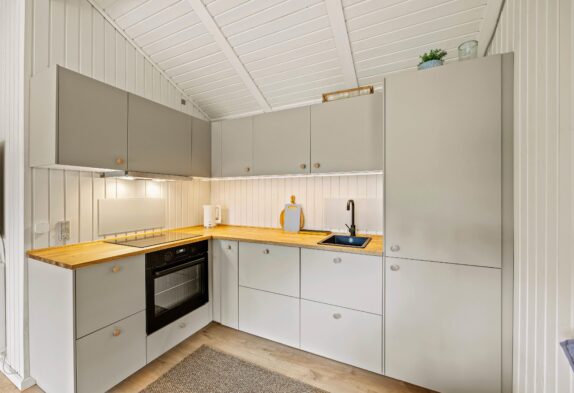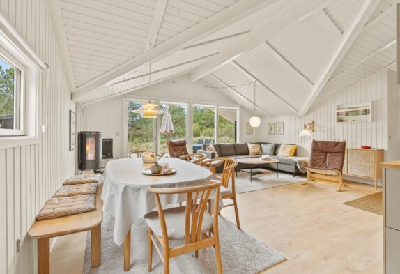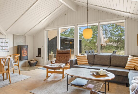 Die 69 m² des Ferienhauses im Sandvej 11 begrüßen euch mit einer hellen, gemütlichen Atmosphäre, in der man sich einfach sofort wohlfühlt. Alle Räume wurden kürzlich renoviert, und mit viel Liebe zum Detail eingerichtet. Im offenen Wohnbereich mit Küche und Essplatz, erwarten euch helle Farben, hohe Decken und eine Einrichtung mit dänischen Design Klassikern. Bei einem knisternden Feuer im Kaminofen, könnt ihr es euch auf dem Sofa bequem machen und den Ausblick ins Grüne genießen. Die neue Küche ist mit modernen Geräten ausgestattet, und bietet ausreichend Arbeitsfläche für viele fleißige Helfer bei den Essensvorbereitungen.