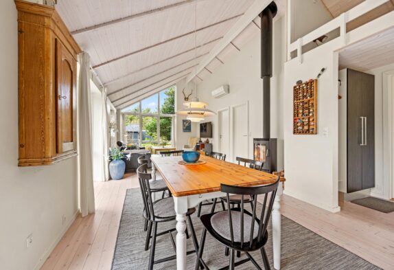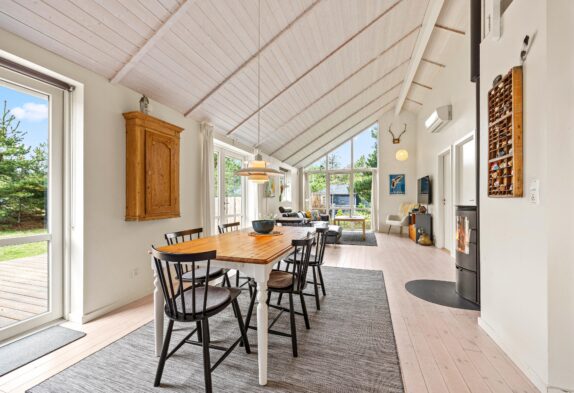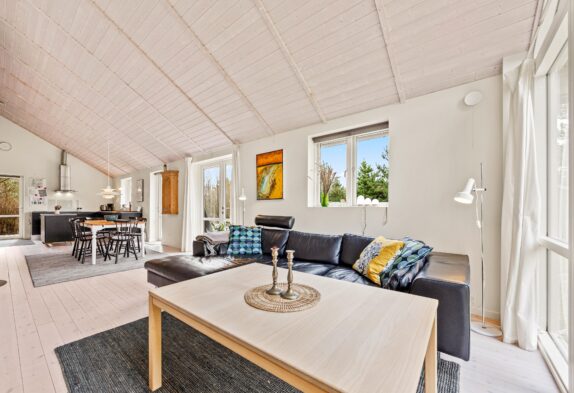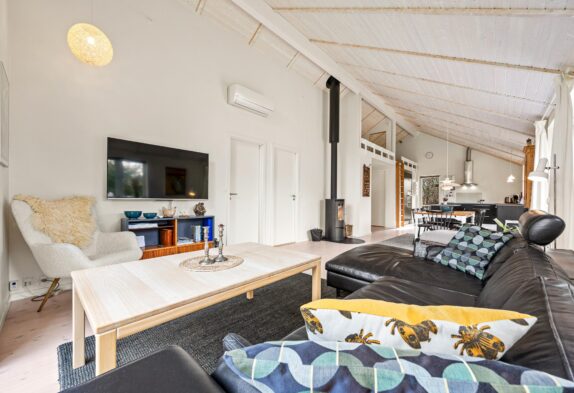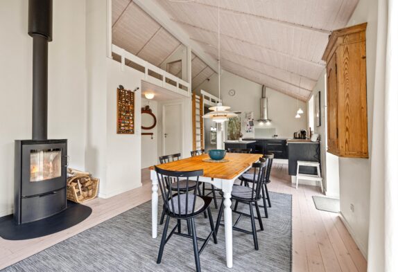 Im Grærup Havvej 22 kommt ihr an und werdet euch garantiert sofort wohlfühlen. Schnell auspacken und dann kann es mit der dänischen Gemütlichkeit und dem stressfreien Ferienalltag direkt losgehen. Der Mix aus viel Holz, hellen Farben und Textilien mit der tollen, modernen Küche in dunklen Farben, geben dem Wohnbereich ein tolles Ambiente. In der großen Küche mit einem Küchenblock in der Mitte werden bestimmt alle gerne bei den Essensvorbereitungen mithelfen. Oder vielleicht doch von oben zuschauen? Über eine Leiter geht es auf einen kleinen Dachboden – dort kann man super hochklettern, es sich gemütlich machen und die anderen in der Küche beobachten.