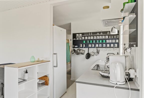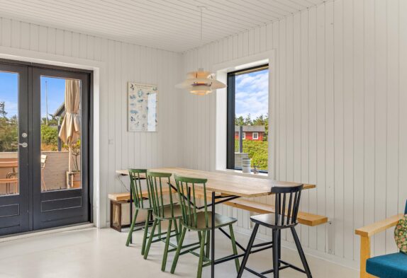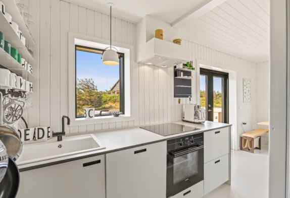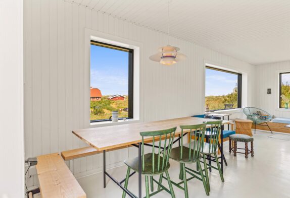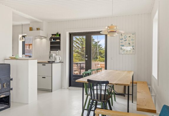 Die Räumlichkeiten sind modern, aber gemütlich im typischen „Skandi-Style“ eingerichtet. Der offene Wohnbereich mit Esstisch, und der Küche in einer kleinen Nische, ist der Ort an dem ihr zusammenkommt. Das besondere hier ist wirklich der Ausblick, den ihr durch die erhöhte Lage genießen könnt. Verwöhnt euch kulinarisch mit den Produkten aus der Region, und taucht mal in die dänische Küche ein …. es lohnt sich, vor allem wenn ihr gerne frischen oder geräucherten Fisch esst.