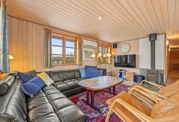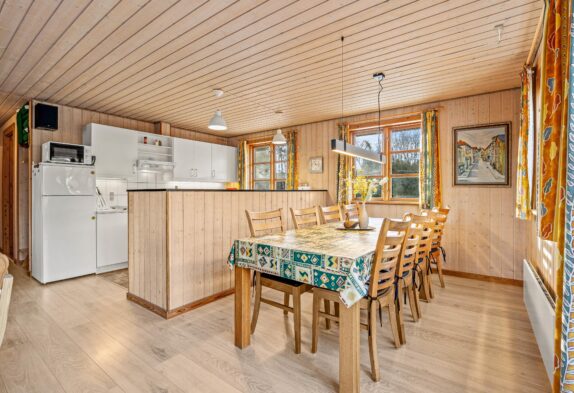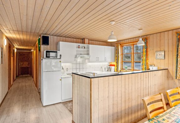 Der Wohnbereich des Ferienhauses im Møllevangen 30 ist der zentrale Ort für Entspannung und Geselligkeit. Hier findet ihr einen Kaminofen, der nicht nur an kühleren Tagen eine wohltuende Wärme spendet, sondern auch für eine behagliche Atmosphäre sorgt. Die moderne Küche bietet alles, was ihr für die Zubereitung leckerer Mahlzeiten benötigt. Dank der praktischen Spülmaschine gehört das Abwaschen der Vergangenheit an, was euch mehr Zeit mit euren Liebsten ermöglicht. Der offene, an die Küche angrenzender Essbereich, bietet ausreichend Platz für gemeinsame Mahlzeiten.