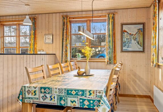 Entdeckt dieses charmante 3+-Sterne-Ferienhaus in Jegum Ferieland, gelegen auf Møllevangen 30, das mit 107m2 Wohnfläche den perfekten Rückzugsort für bis zu 8 Personen bietet. Ob ihr entspannte Tage vor dem Kamin verbringen, die Sauna genießen oder einfach die dänische Natur auf der Terrasse erleben möchtet – hier seid ihr richtig.