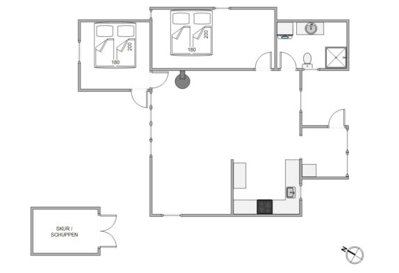 Im Sommerhaus gibt es 2 helle und geräumige Schlafzimmer, die beide über 2 Doppelbetten verfügen. Im Badezimmer gibt es Fußbodenheizung wie auch eine Waschmaschine, die euch bei eurer Urlaubswäsche behilflich sein kann.