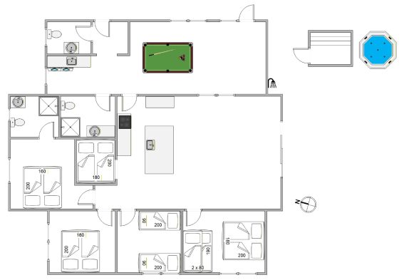 Danach könnt ihr euch im Aktivitätsraum austoben. Hier steht unter Anderem ein Billardbord für euch bereit. Insgesamt findet ihr 2 Bäder mit Fußbodenheizung und ein Gäste-WC in diesem modernen Ferienhaus – so könnt ihr Wartezeiten vermeiden. Für eine erholsame Nachtruhe stehen euch insgesamt 4 gemütliche Schlafzimmer wie auch 2 Schlafplätze im Alkoven zur Verfügung. Hier könnt ihr eure Akkus wieder aufladen und erholt in den nächsten Urlaubstag starten.