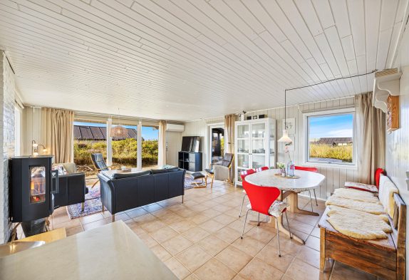 Bereits beim Betreten des Ferienhauses empfängt einen das dänische Hyggegefühl. Der großzügige Wohn-Essbereich mit angrenzender Küche wurde mit viel Liebe zum Detail eingerichtet und strahlt viel Gemütlichkeit aus. Freut euch auf entspannte Abende vorm Kamin mit einem guten Buch oder bei einem gemeinsamen Filmabend. Es gibt 3 deutsche Kanäle in diesem Ferienhaus. Auch Apple TV steht euch hier zur Verfügung. Zusätzlich zum Kamin könnt ihr auch die energiesparende Wärmepumpe zum Heizen nutzen.