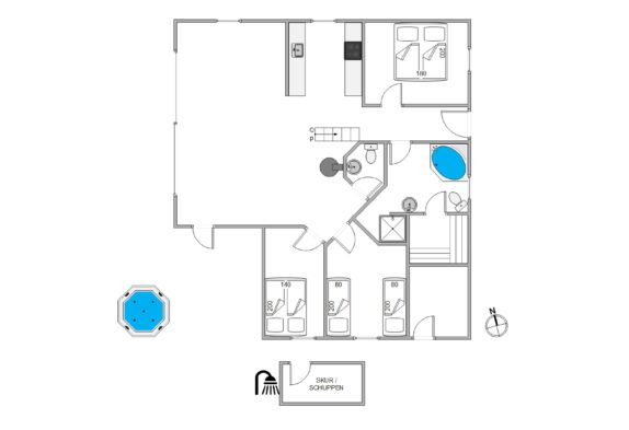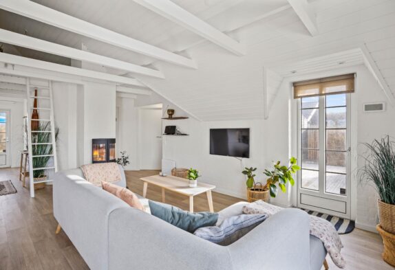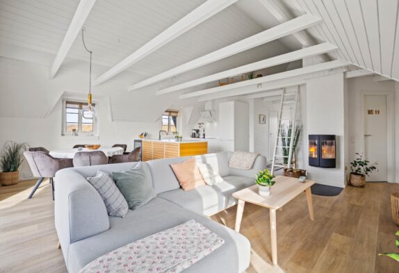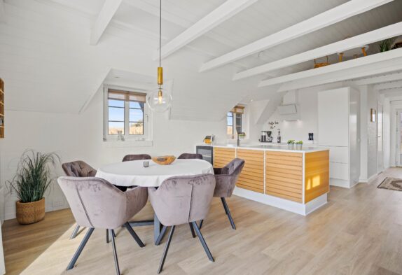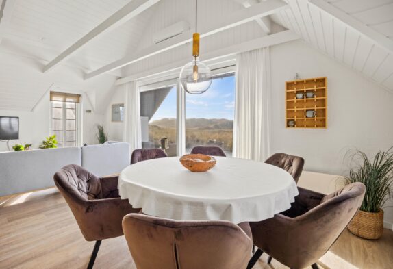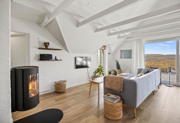 Das Herzstück des Ferienhauses ist das schöne und offene Wohnzimmer, in dem ihr die Möglichkeit habt, mit allen zusammen zu sein und etwas zu unternehmen. Während die einen das Abendessen zubereiten, haben die anderen die Möglichkeit, sich auf dem Sofa zu entspannen, die Wärme des knisternden Holzofens zu genießen, ein Spiel zu spielen oder ein Buch zu lesen. Außerdem habt ihr die Möglichkeit euch ein kaltes Getränk zu holen, während ihr die warmen Bläschen aus dem wunderbaren Außenwhirlpool genießt und dabei den Sonnenuntergang über den Dünen beobachtet.