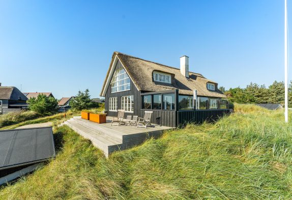 Auf einem schönem, fast 2000 m2 grossem Grund liegt nur 400 Meter vom herrlichen Sandstrand diesen in 2019 neu erbaute Reetdachhaus im Nordvej 42.
