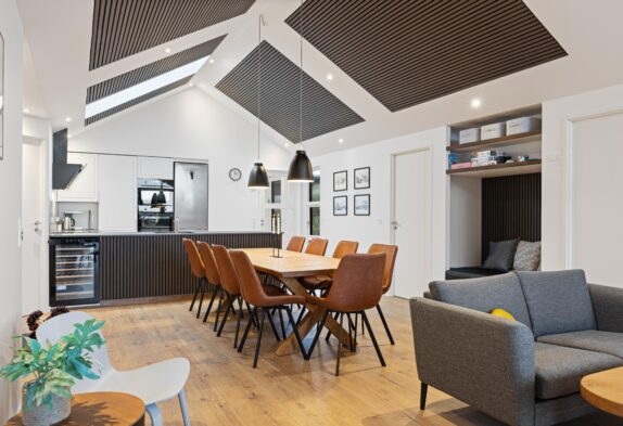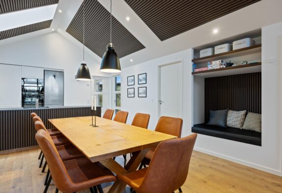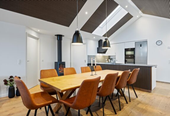 Das Ferienhaus wurde im Jahr 2024 neu gebaut und heißt euch mit einer modernen Einrichtung willkommen. Der Mittelpunkt des Ferienhauses wird der Wohnraum sein, der Küche, Wohnzimmer und Essbereich miteinander verbindet. Hier könnt ihr gemeinsam neue Rezepte ausprobieren oder bei einem Spieleabend den Pokerchampion des Urlaubes küren. Der Holzofen im Wohnraum sorgt währenddessen für die typische Ferienhausatmosphäre mit seinem prasselnden Feuer und der wohligen Wärme.