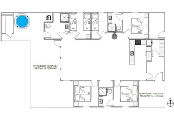 Das Ferienhaus im Nordsøvej 279 in Søndervig steht auf einem ca. 1500 m2 großem Natur- und Dünengrundstück. Der Terrassenbereich des Ferienhauses ist zum Teil offen, abgeschirmt und überdacht, sodass jeder seinen Lieblingsplatz bei den verschiedensten Wetterlagen findet. Während ihr es euch auf der Terrasse gemütlich macht, können eure Kinder zu großen Entdeckern auf dem Grundstück werden oder sich auf der Schaukel austoben. Eine Sandkiste steht euren Kindern ebenfalls zur Verfügung. Für die Extraportion Entspannung sorgen auf der Terrasse die Außensauna und der Außenwhirlpool.
