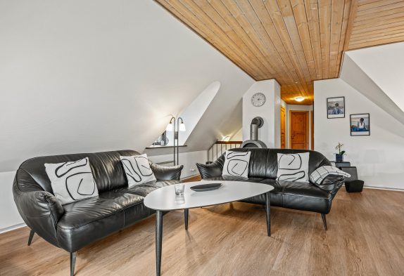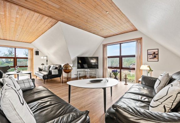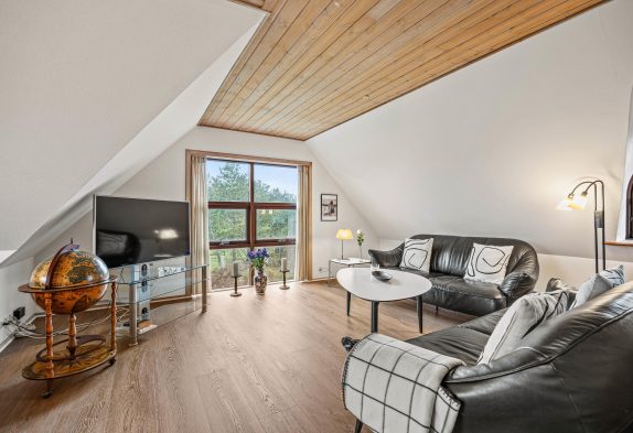 Das 191 m² große Ferienhaus erstreckt sich über zwei Etagen. In der oberen Etage befindet sich das gemütliche Wohnzimmer, in dem ihr viele schöne Urlaubsmomente verbringen könnt- vielleicht mit einem Kartenspiel oder bei einem geselligen Filmeabend? Von hier aus könnt ihr sogar den Leuchtturm Blåvandshuk sehen, der an der westlichsten Spitze Dänemarks steht.