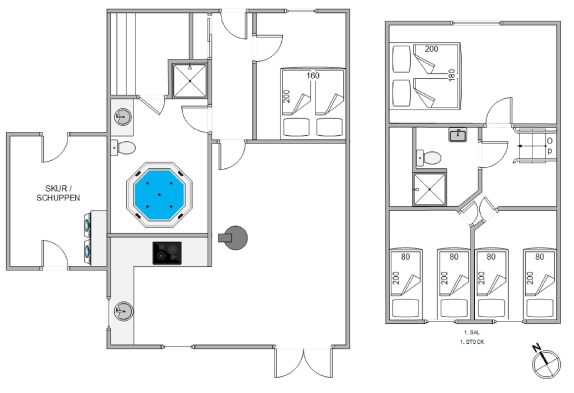 Wem es noch nach etwas mehr Entspannung steht, wird sich über die hauseigene Sauna sowie den Whirlpool besonders freuen. Hier können viele Stunden der Ruhe und Erholung gewidmet werden, ohne das Ferienhaus verlassen zu müssen.