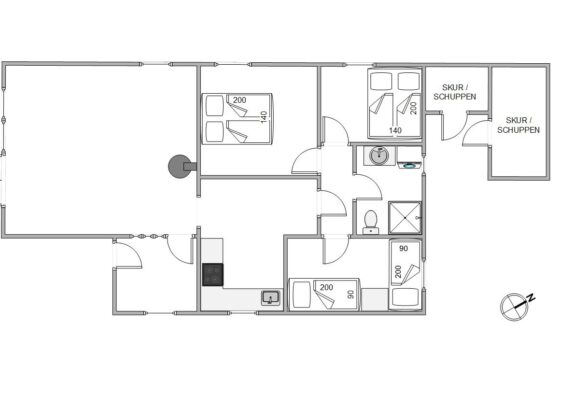 Das Sommerhaus verfügt über drei gemütliche Schlafzimmer, die reichlich Platz für bis zu sechs Personen bieten. Und auch das moderne Badezimmer mit Fußbodenheizung sorgt für den nötigen Komfort während eueres Aufenthalts.