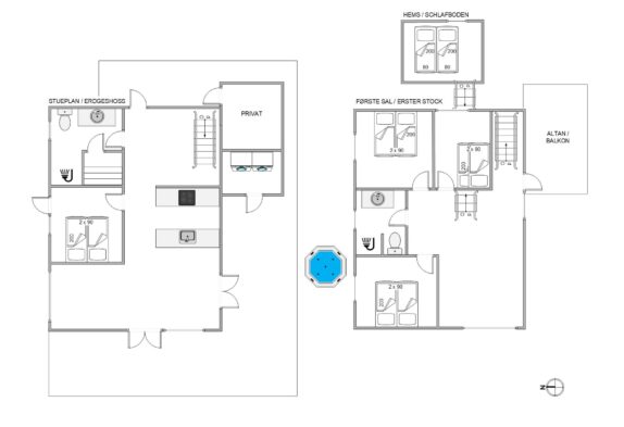 Mit insgesamt 4 Schlafzimmern, 2 Badezimmern mit Fußbodenheizung und einer geschmackvollen Ausstattung, darunter eine moderne Küche mit Spülmaschine, sowie ein gemütlicher Wohnbereich, bietet dieses Ferienhaus alles, was euer Herz begehrt. 2 Doppelbetten, 2 Einzelbetten, 1 Etagenbett und zwei weitere Matratzen im Schlafboden sorgen für erholsamen Schlaf.