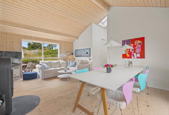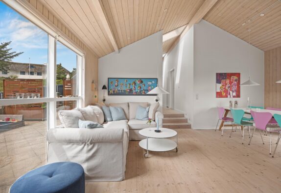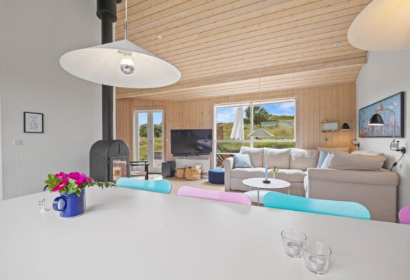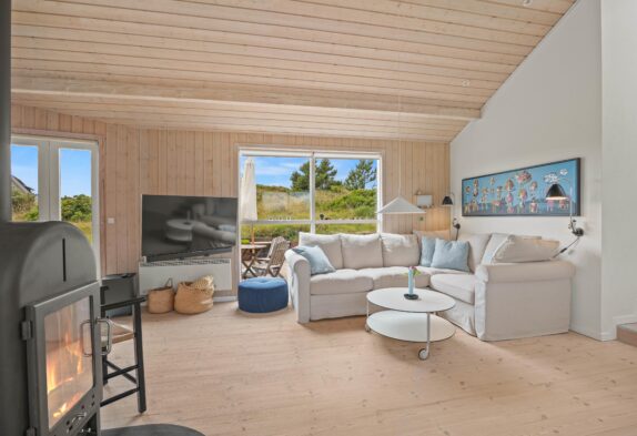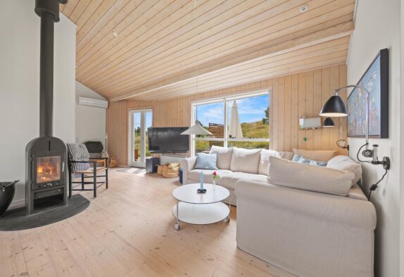 Das Ferienhaus in Grærup Strand besticht durch seine gemütliche Atmosphäre und umfassende Ausstattung. Der freundlich gestaltete Wohnbereich bietet euch einen modernen Fernseher und einen Kaminofen, der an kühleren Abenden wohlige Wärme und eine hyggelige Atmosphäre schafft. Die energiesparende Wärmepumpe sorgt für ein angenehmes Raumklima.
