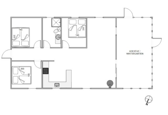 Ein besonderes Merkmal des Ferienhauses ist der Wintergarten. Hier könnt ihr das ganze Jahr über die Natur genießen, unabhängig vom Wetter. Der Wintergarten ist nicht nur ein idealer Ort zum Entspannen und Lesen, sondern auch perfekt für gesellige Momente mit Blick auf das Rasengrundstück.