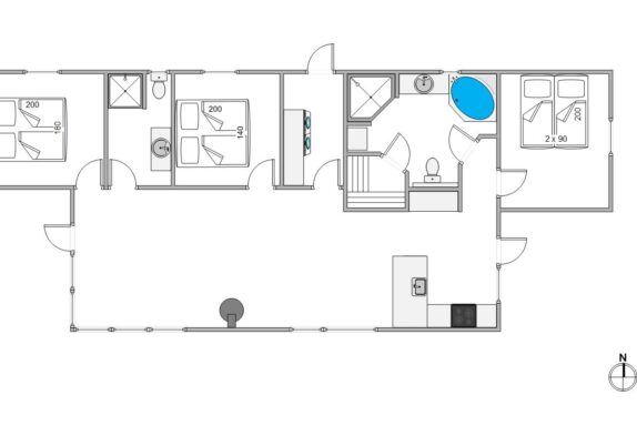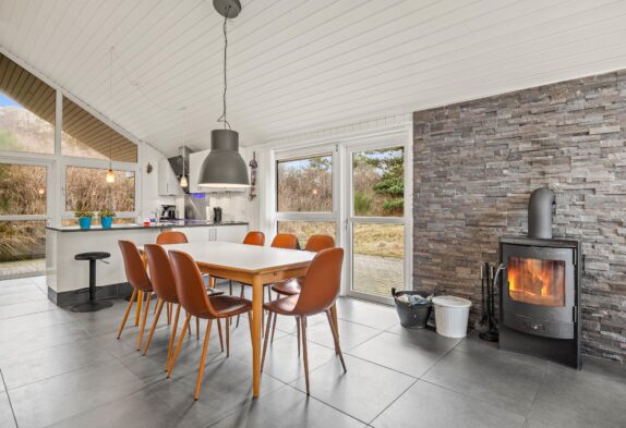 Weiterhin stehen euch 2 Badezimmer zur Verfügung, die beide mit Fußbodenheizung ausgestattet sind. In einem der Badezimmer erwartet euch zudem eine Sauna und ein Whirlpool – eine Wellnessoase, ideal zum Entspannen nach einem Spaziergang am Strand. Die moderne Einrichtung mit stilvollen Möbeln, geräumige Flächen und helle Farben, sowie auch der schöne Kaminofen, der an kühlen Abenden für eine wohlige Wärme sorgt, sorgen für eine angenehme und entspannende Atmosphäre. Dank der modernen Wärmepumpe bleibt die Temperatur im Ferienhaus immer auf einem angenehmen Niveau, egal zu welcher Jahreszeit. Das Ferienhaus in Henne Strand verfügt über eine umfassende Ausstattung, die euren Aufenthalt so angenehm wie möglich macht. Die gut ausgestattete Küche mit Spülmaschine und einem 60-Liter-Gefrierschrank lädt zum gemeinsamen Kochen ein. Der praktische Flur bietet eine Waschmaschine und einen Trockner, sodass ihr euch um die Wäsche keine Sorgen machen müsst.