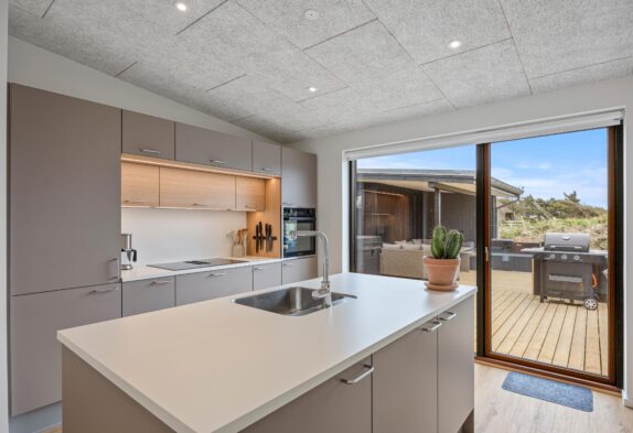 Für den alltäglichen Komfort ist im Ferienhaus in Nr. Lyngvig bestens gesorgt. Die moderne, voll ausgestattete Küche beinhaltet eine Spülmaschine und bietet dir die Möglichkeit, problemlos für alle Gäste zu kochen. Ein großer, separater 100-Liter-Gefrierschrank bietet viel Stauraum für Vorräte und Erfrischungen. Der gemütliche Wohnbereich ist einladend gestaltet und beherbergt einen Kaminofen, der an kühleren Abenden wohlige Wärme spendet. Eine Luft-Wasser-Wärmepumpe sorgt zudem für ein konstantes Wohlfühlklima in allen Räumen.